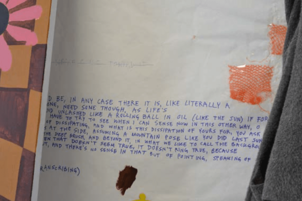 CK: Yeah. I think they’re kind of soupy though. […] It sucks because I have a clipboard, and I’m like, hiding it and watching people try to figure it out, and I don’t want to do that. But I also do like having a secret, and it’s interesting for me to have the audience make their own interpretation. But I am interested in merging those two more. I think that one of my issues right now is trying to be less esoteric. There’s a value in creating all these [unsolved meanings] but then you get buried too deep. […] It’s a process of keeping my clipboard, but opening it a little bit. And that’s in form, too—I’m trying to create more open forms, and have more trailing ideas.