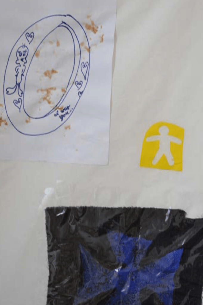 CK: I don’t know—these two, I like them lying next to the other and viewed as a textile piece—I have ideas that aren’t just flat. This one [car] is actually a sculpture—it has this rounded belly here… So it’s two-sided, and I want it to stand as a show piece on the ground rather than a wall so it can be [seen in] 360 [degrees]. So this is really more of a sculpture. It’s filled with salt, actually. I don’t know how to predict this, but it’s starting to oxidize.