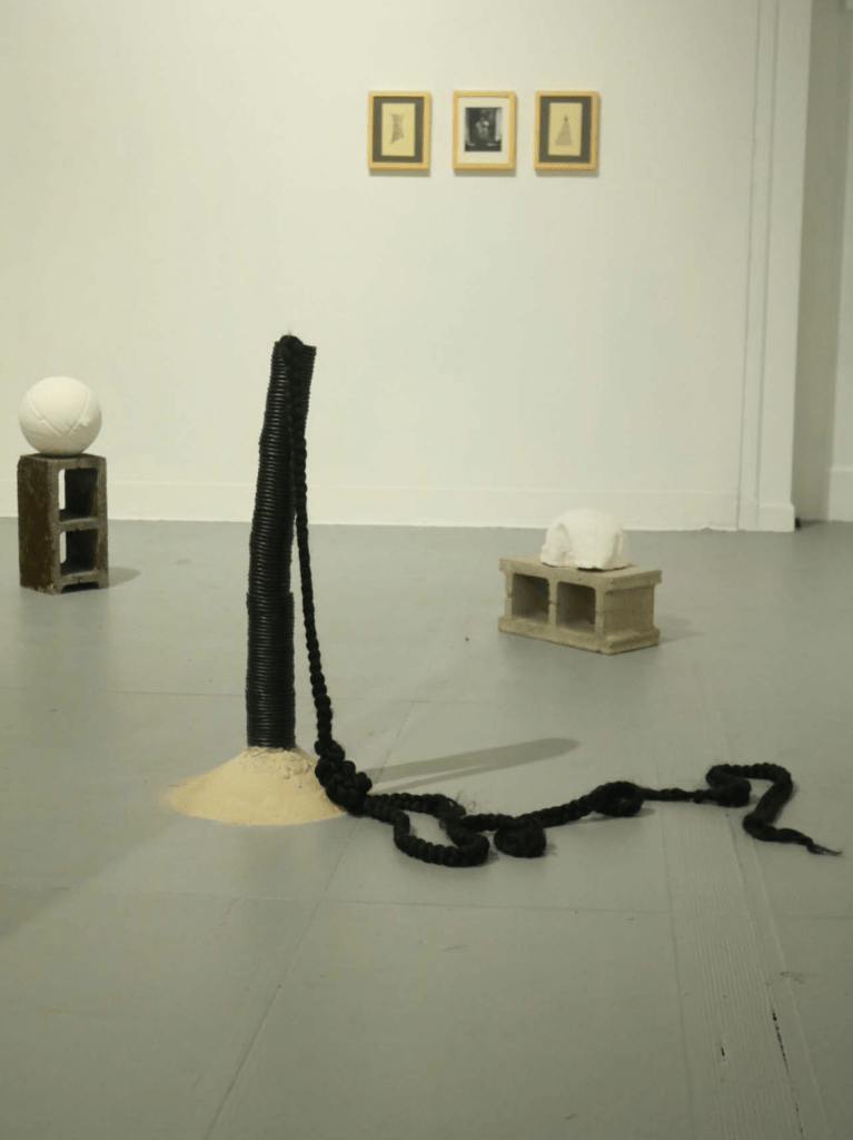 My work is very process-based and a lot of the work that I make comes out of a very long contemplative process. Creating work and going through the ritual is doing these certain things which will then ultimately lead to the final production. So, I started off doing a lot of braiding with various materials––I was using a rope, I was using synthetic areas, using real hair and making these long braids. I was doing that because the ritual of braiding felt very important. It felt very connected to this history of braiding in the Black community, which is something I wasn’t really exposed to in the same way that a lot of other Black people were. But not having done that disconnected me from something. I started doing that and was creating a lot of different sculptures with hair. I created a few prints using hair and seeing how I can insert myself this thing that I wasn’t really a part of.