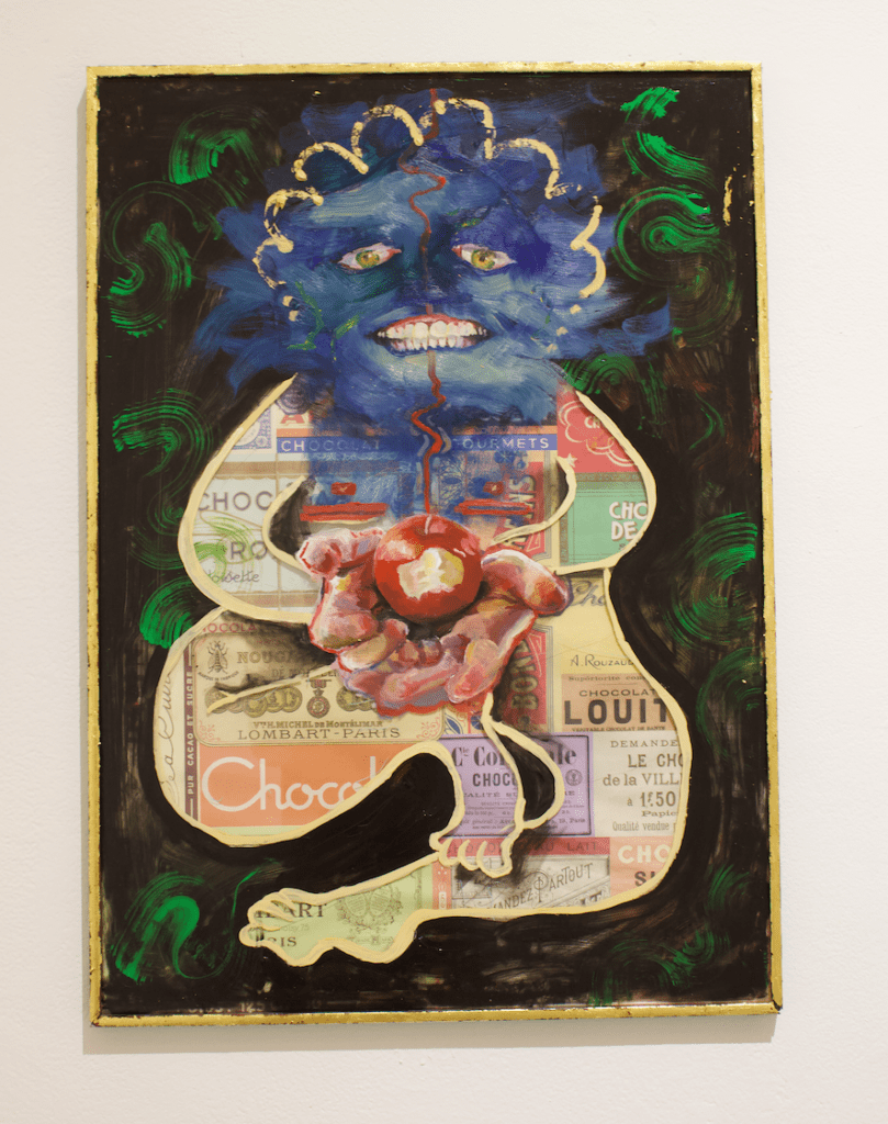 Definitely. I want to play with bringing stuff off of the gallery wall, [causing] this conflict between the rectangular frame on a white wall and bringing stuff out of that. Part of the way I want to do that is by trying to work sculpturally, which I’m kind of scared of because I don’t have a lot of practice. Putting objects together in a not-wall space is something I want to try. I also just want to try to go bigger and see how big I can go, how crazy I can get. Those are the things that I’m thinking about, future things I want to explore, at least for the rest of the semester.